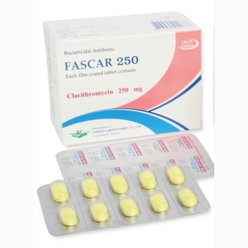 CLARITHROMYCIN FILM-COAT TB 250 MG 10 UNITS FASCAR UNISON (excluded of 20 USD Postage fee/order)