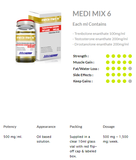 Trenbolone enanthate 100mg/ml and Testosterone enanthate 200mg/ml and Drostanolone enanthate 200mg/ml 1 UNITS MEDI MIX 6 MEDITECH (excluded of 20 USD Postage fee/order)