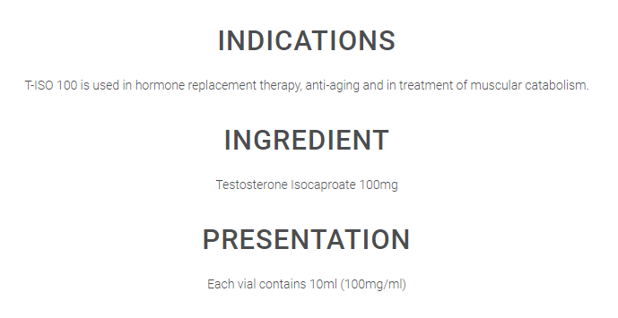 TESTOSTERONE ISOCAPROATE 100 MG 10 CC VIAL 1 UNITS T-ISO 100 PLATINUM BIOTECH (excluded of 20 USD Postage fee/order)